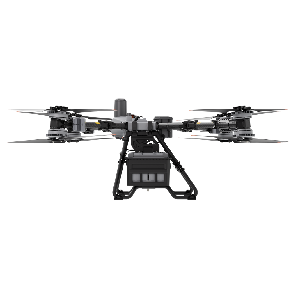 DJI FlyCart 100 (DJI FC100) to zaawansowany dron transportowy zaprojektowany do profesjonalnych operacji dostaw w terenie, gdzie liczy się udźwig, bezpieczeństwo i pewność działania. Konstrukcja została przygotowana z myślą o zastosowaniach przemysłowych i logistycznych, dlatego DJI FlyCart 100 pozwala realizować transport w środowiskach, które dla klasycznych platform UAV są zbyt wymagające. Dron przenosi ładunki o masie do 100 kg w trybie pojedynczej baterii oraz do 85 kg w trybie podwójnej baterii, a przy masie startowej sięgającej 170 kg oferuje możliwości, które wyznaczają nowy standard w bezzałogowej logistyce.