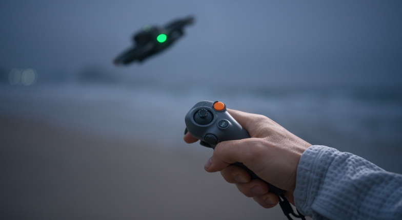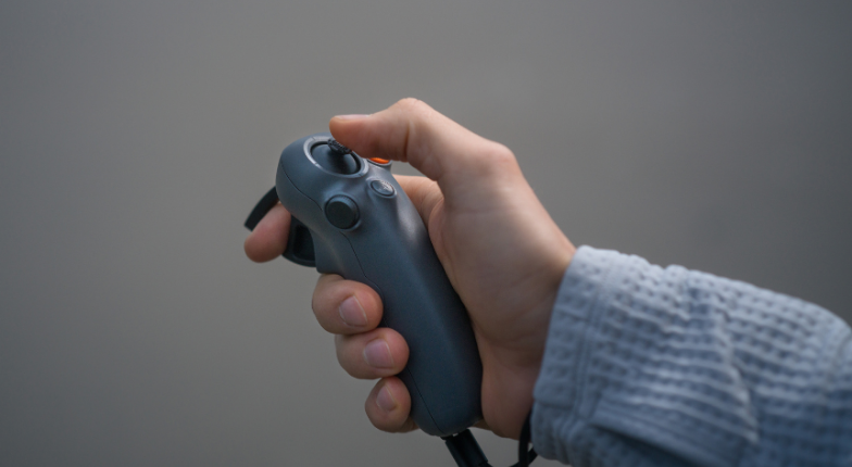 Sterowanie dronem DJI Avata 2 z użyciem DJI RC Motion 3 jest proste i naturalne. Ruchy dłoni przekładają się bezpośrednio na tor lotu, co ułatwia szybkie opanowanie sterowania FPV.