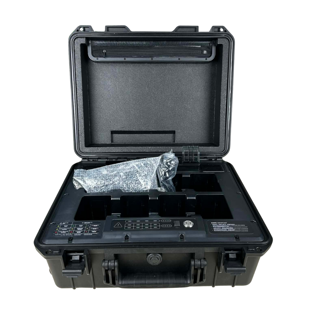 Maksymalna wydajność: Stacja pozwala na jednoczesne ładowanie do 4 akumulatorów do drona oraz 4 akumulatorów do aparatury sterującej. Tak duża pojemność umożliwia płynną wymianę ogniw i zachowanie ciągłości lotów bez zbędnych przestojów.